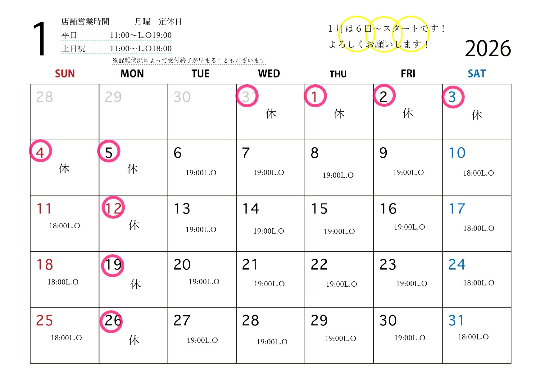 年内の営業は終了しました!2026年は1月6日からスタートです!